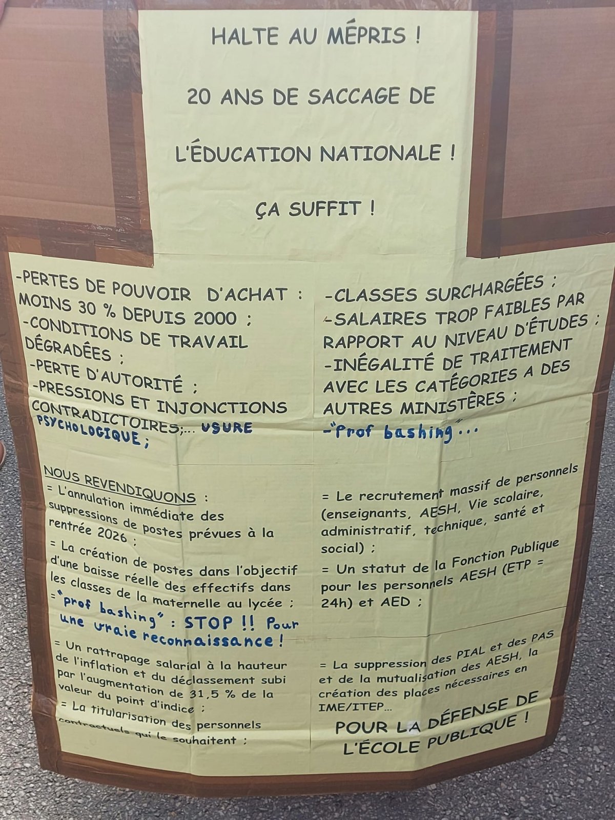 Pour la création d'un statut de la fonction publique pour les AESH et les AED ! Pour l'annulation des fermetures de postes et de classes !